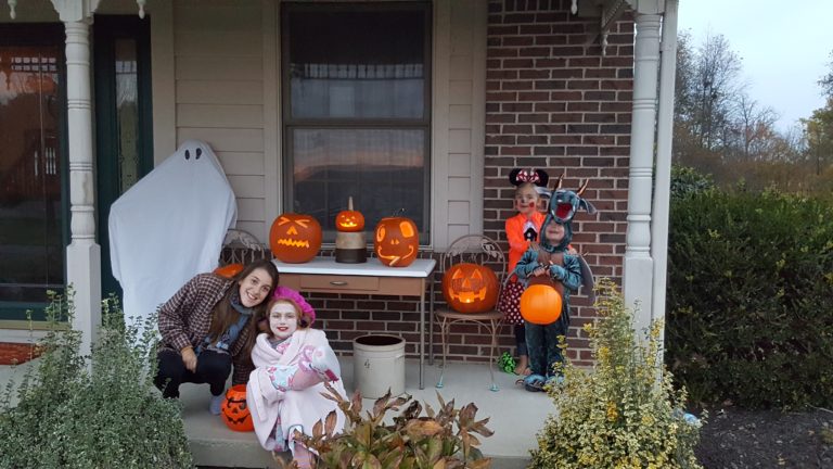 Pas de chance pour la petite Marie, elle est tombée malade seulement quelques jours avant cette fête de l’horreur… Mais ses host kids avaient tellement envie de lui faire découvrir Halloween qu’elle a su trouver l’énergie nécessaire pour s’émerveiller ! La veille, l’école des enfants proposait un concours de la citrouille la plus “cool & fun”. Et le jour J, en avant les déguisements de dragon, de Mickey Mouse, de fantômes, de “spa girl” et début du trick or treat à 6:30 PM…