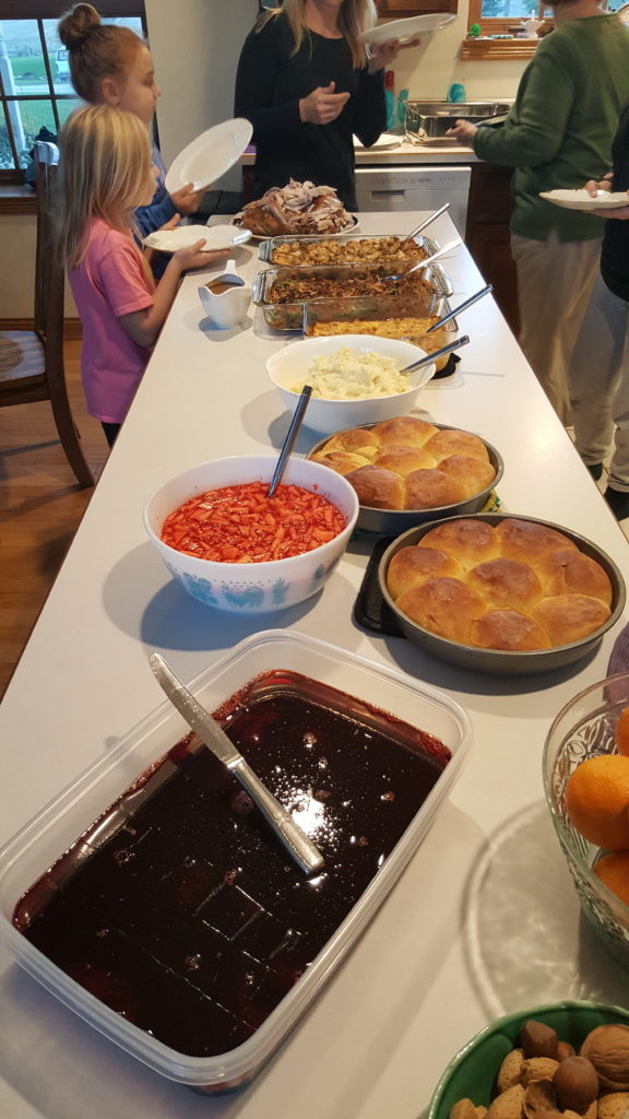 Mais quand est-ce qu’on mange ? C’est un peu comme le réveillon, selon les familles le repas a plutôt lieu le midi ou le soir, pour certains, les deux ! “J’ai tellement mangé ! Pour eux, ça ressemble à de la grande cuisine. Mais ça n’est pas comme en France. Je ne pourrais pas dire que c’était THE repas même si c’était très bon”. Pour Marie, la cuisine Française restera la meilleure, d’ailleurs la baguette commence à lui manquer ! Au menu : de la gelée à la pomme/cerise et à la cannelle, des tartes, du “stuffing” avec des herbes pour la viande, des haricots verts, un plat à base de maïs et de chips.